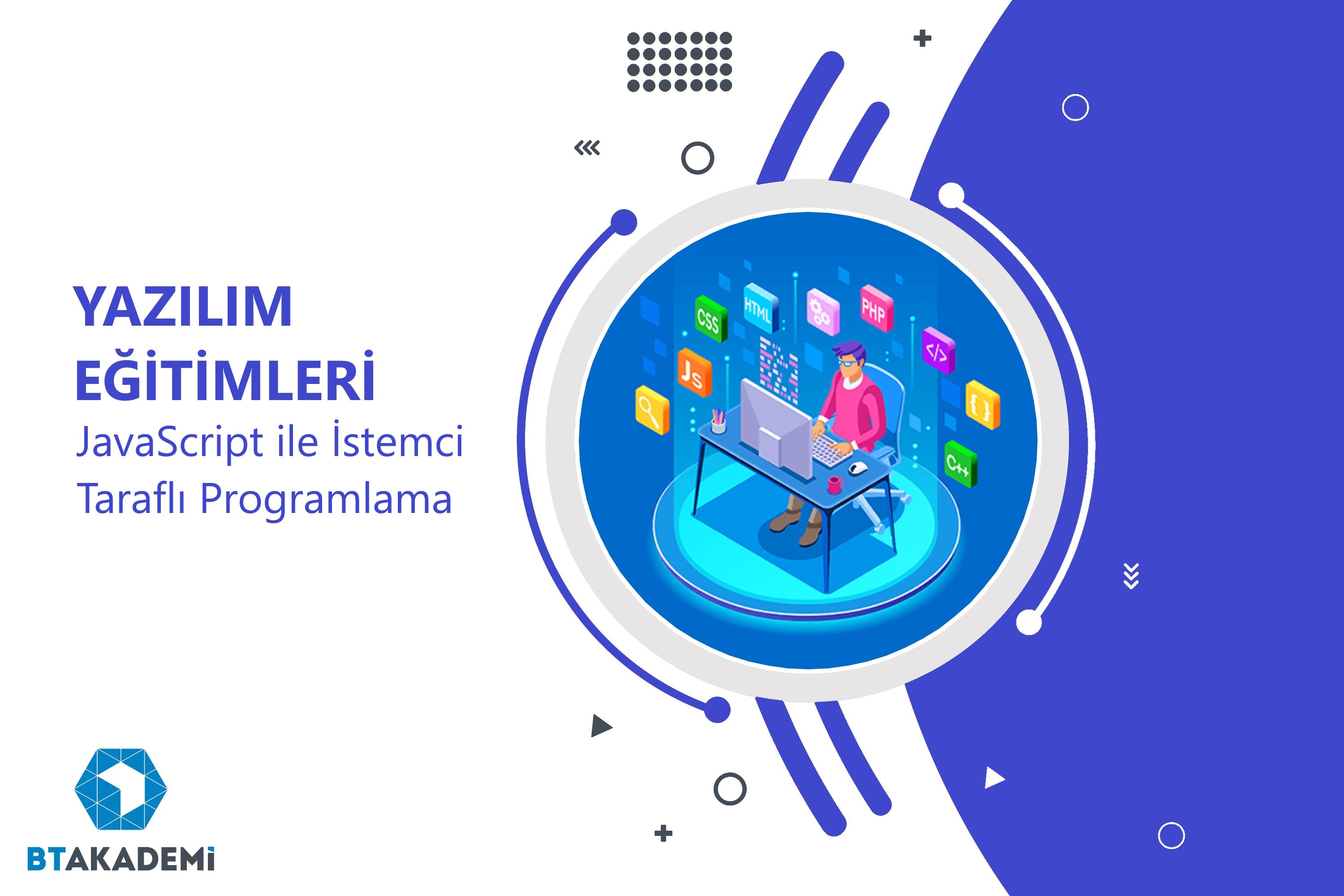 JavaScript artık sadece web uygulama geliştiricilerinin değil, masaüstü , mobil uygulama geliştiricilerinin de vazgeçilmez yazılım dili olmuştur. Yazılım geliştiriciler için çoğunlukla ikinci planda kalmış olan JavaScript günümüz platform çeşitliliğinde artık vazgeçilmez ve tam anlamıyla öğrenilmesi gereken bir dil olmuştur. Özellikle mobil platformlarının yaygınlaşması ve HTML’in tam anlamıyla evrim geçirmesinden sonra JavaScript en az sunucu taraflı geliştirme dilleri kadar önemli hale gelmiştir. Bu eğitimde JavaScript bir programlama dili bakışı açısıyla ele alınmakta ve javaScript’in tüm özellikleri detaylı olarak anlatılmaktadır. Katılımcılar bu eğitimden sonra JavaScript’e korkulan bir dil olarak bakmayacakları gibi özgürce JavaScipt kodu yazmanın zevkine kavuşacaklar.